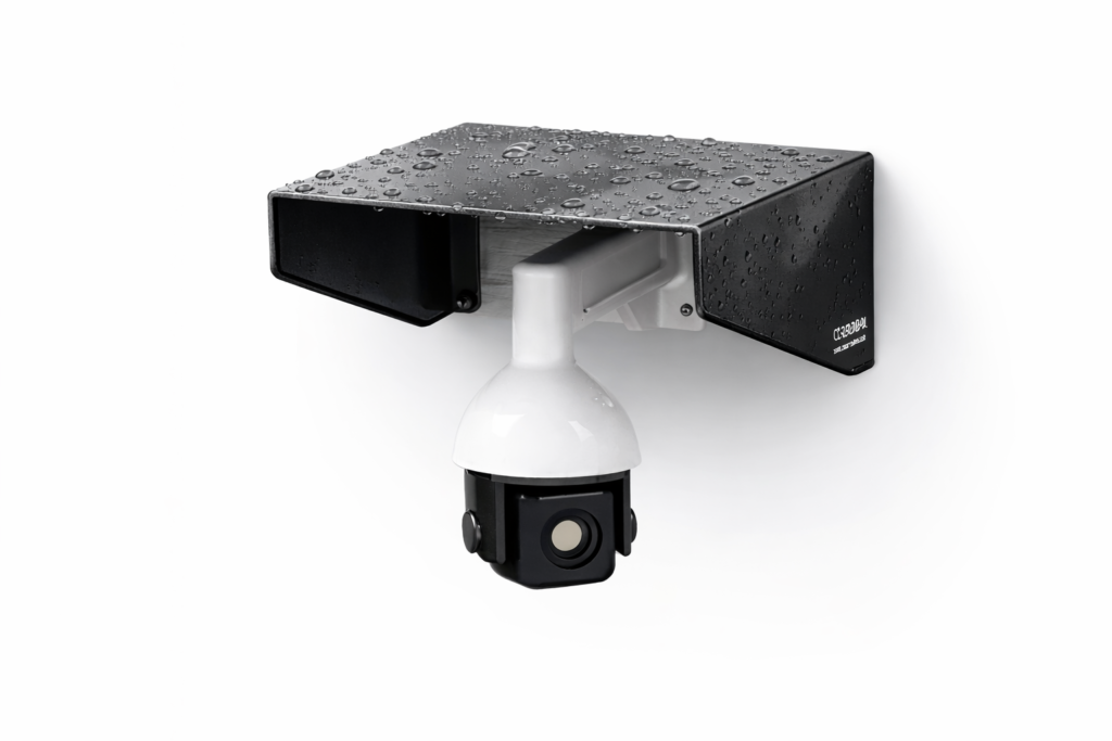 In combinatie met de CC-serie — die camera’s beschermen tegen weersinvloeden — biedt deze beugel een duurzame en solide oplossing voor montage op ronde palen.